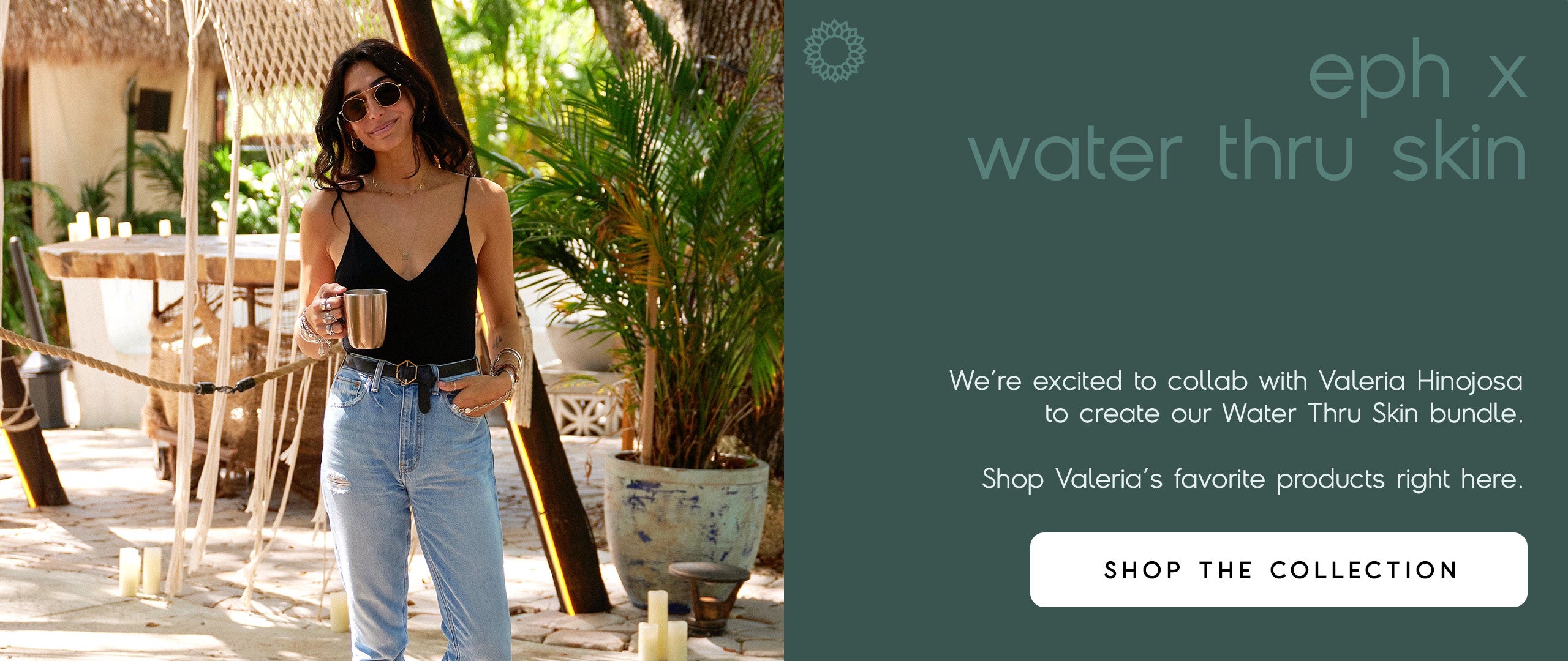 We’re excited to collab with Valeria Hinojosa to create our Water Thru Skin bundle. Shop Valeria’s favorite products right here.